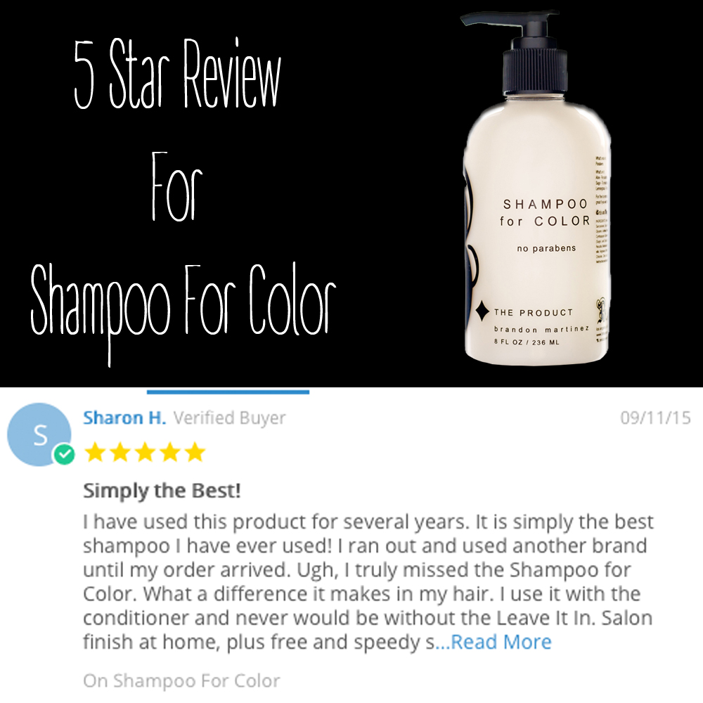 B. The Product wants to give a big shout out to Sharon Herzog from Santa Barbara CA. Thank you so much for this amazing five star review on the the Shampoo For Color! We love and appreciate you.