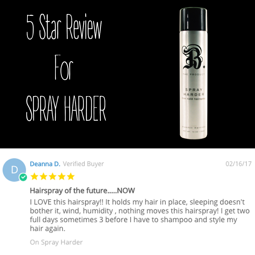 Checkout our new 5-Star review on our red carpet, firm hold hairspray—Spray Harder.